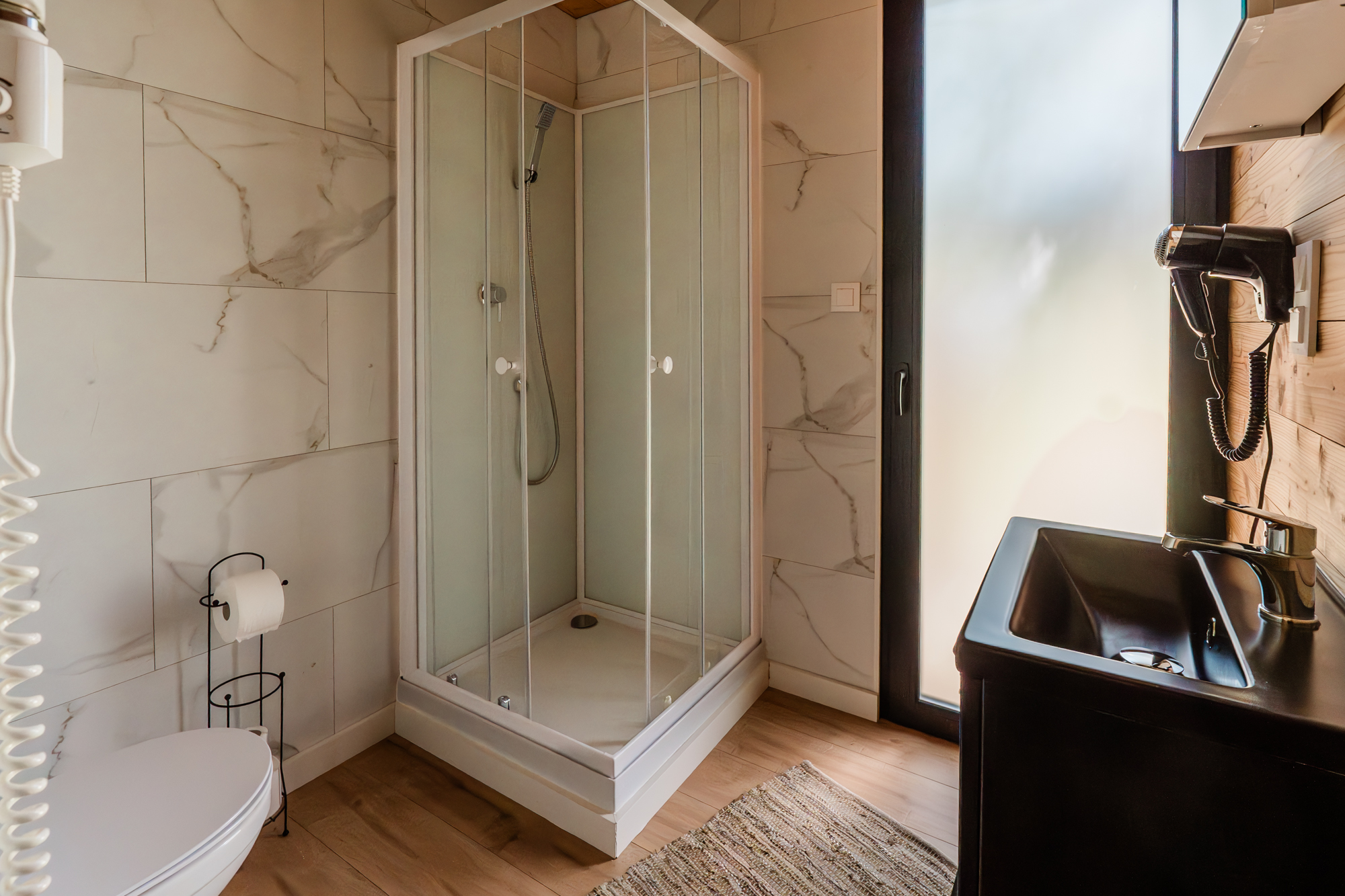 Każdy domek jest wyposażony w aneks kuchenny, lodówkę, czajnik elektryczny, podstawowe naczynia, klimatyzację, ogrzewanie, łazienkę z prysznicem, TV.